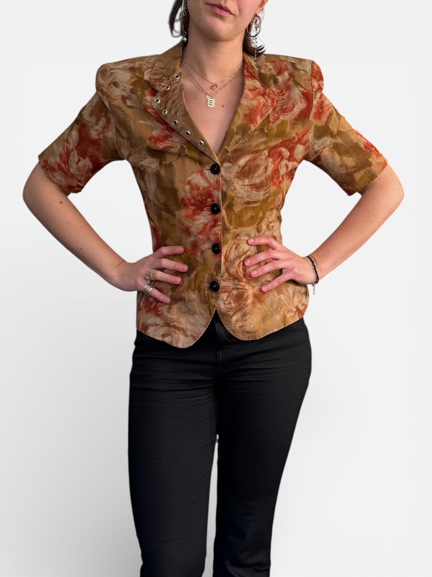 REWORK getailleerde top in bloemmotief met schoudervulling
