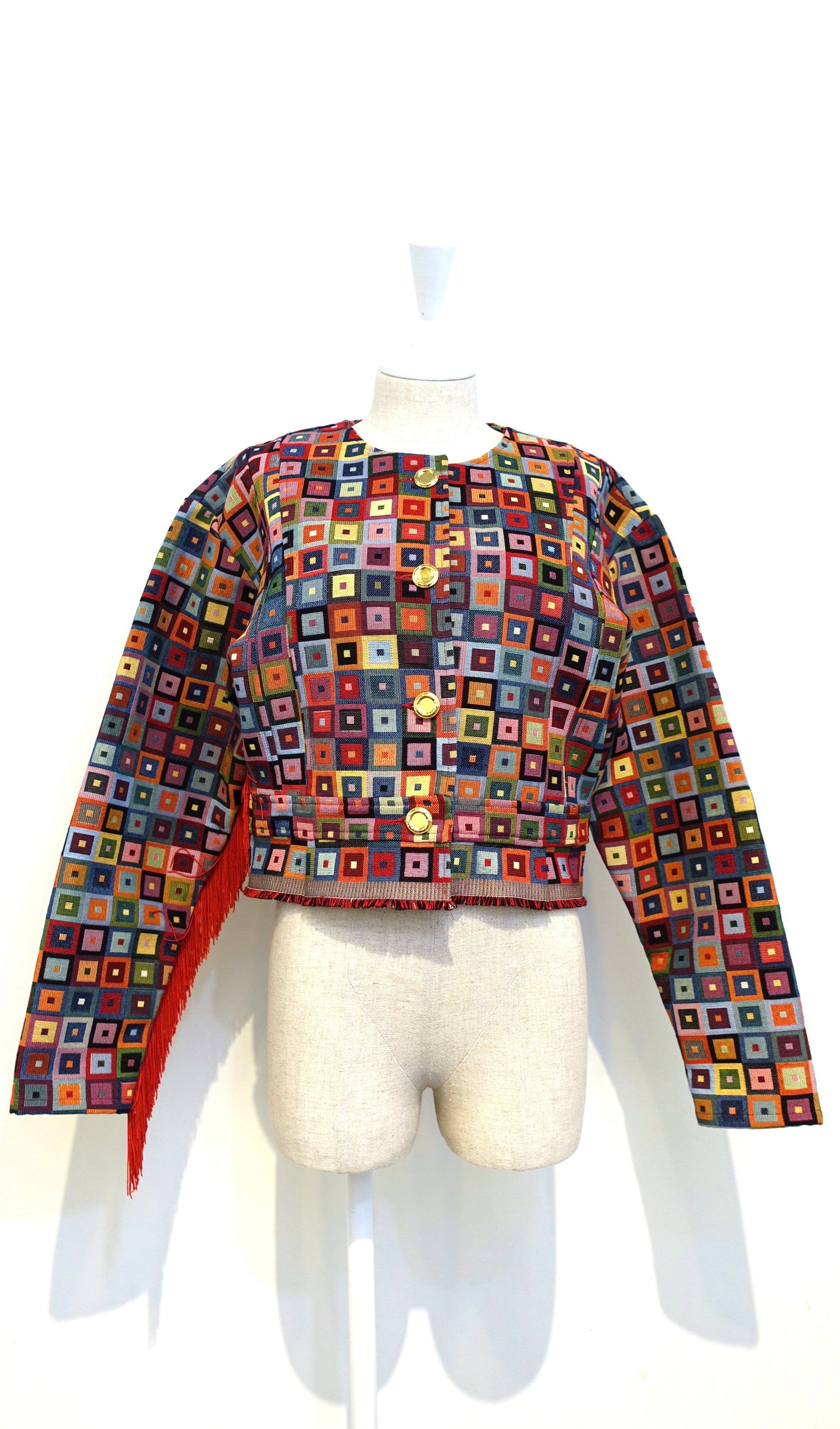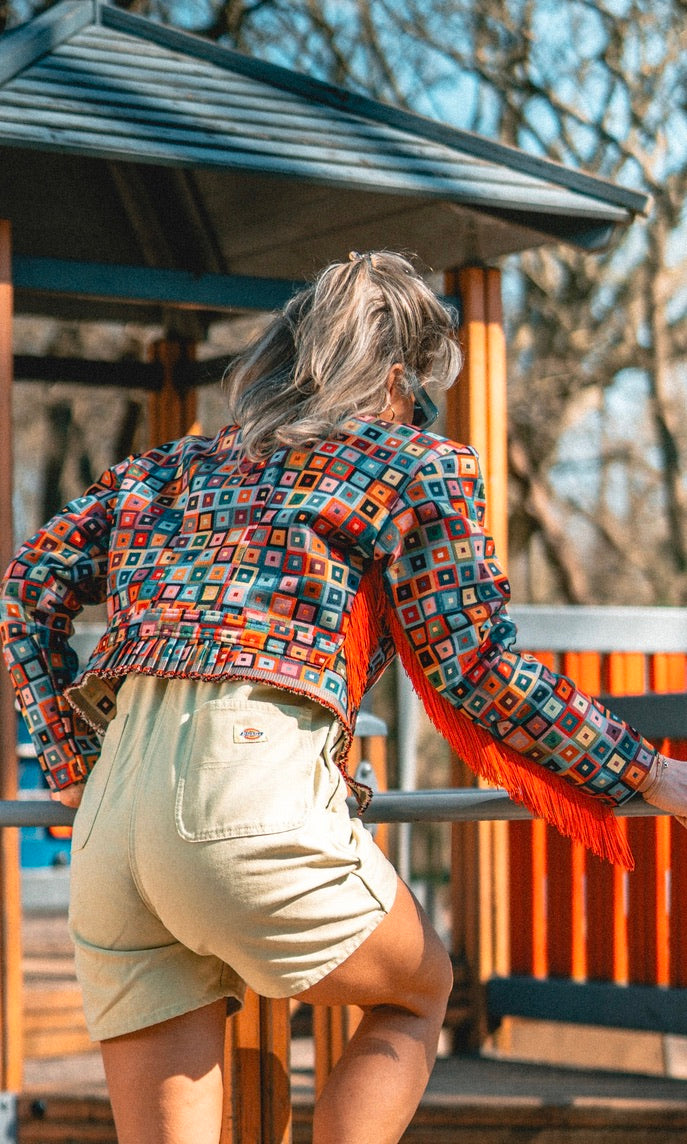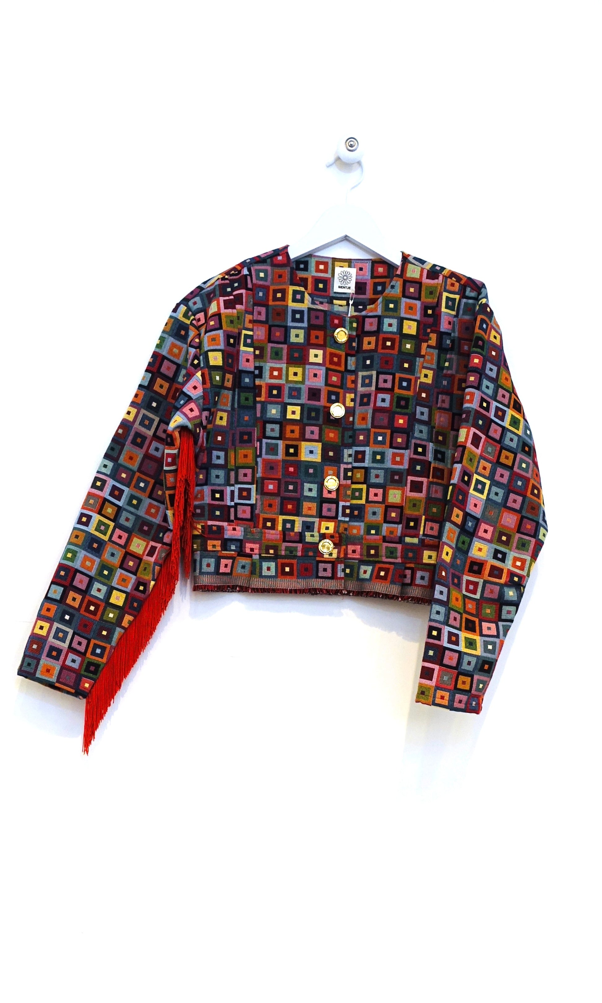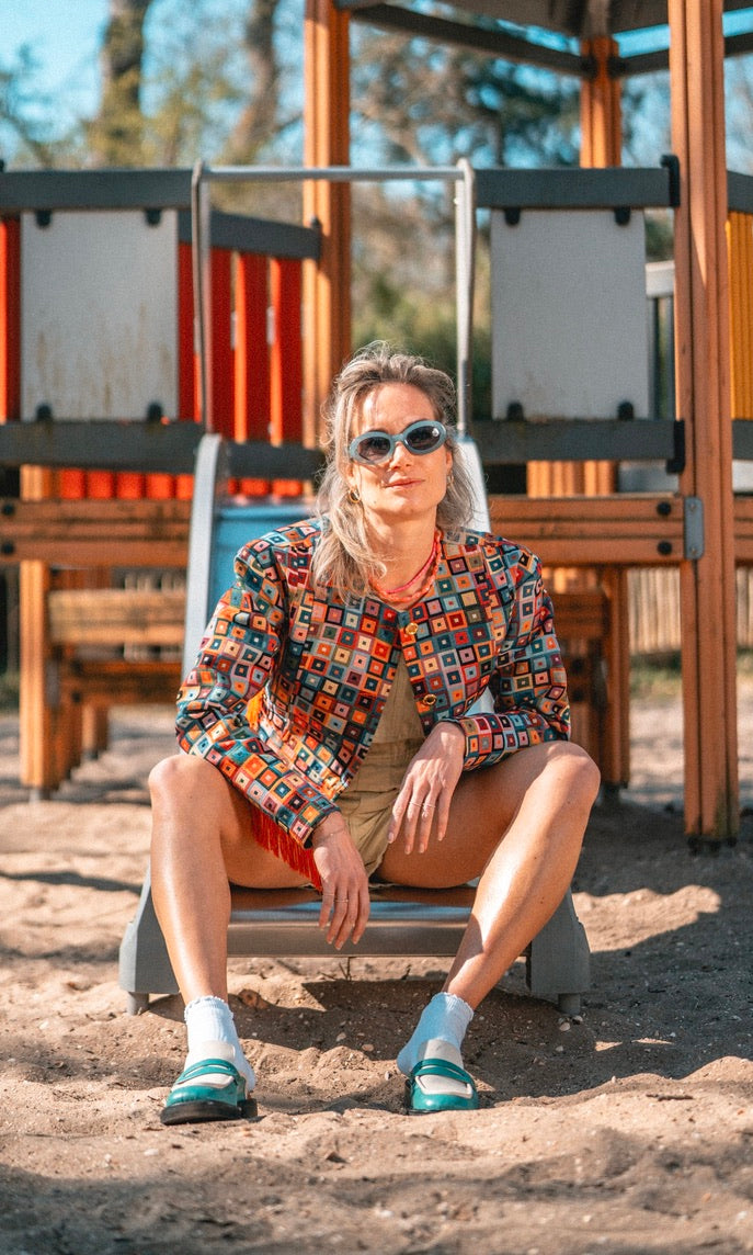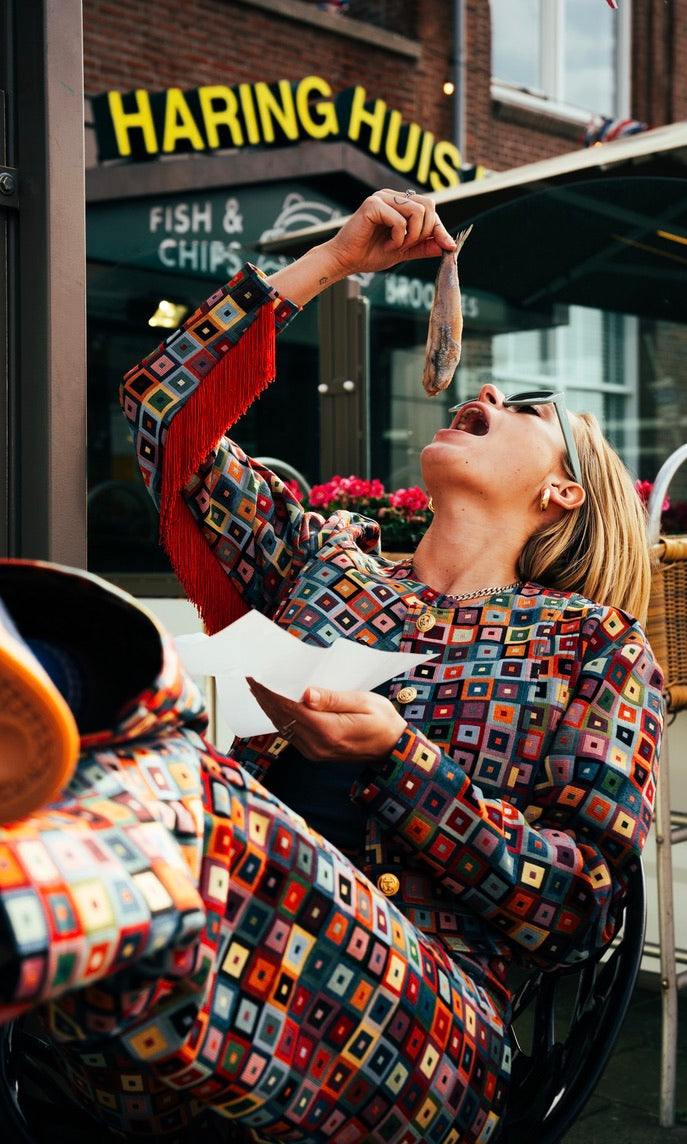 Het Scheveningse Jakje is een ode aan de Scheveningse Klederdracht en wat de vrouwen vroeger droegen. Het traditionele patroon in combinatie met een moderne stof blaast het erfgoed nieuw leven in!